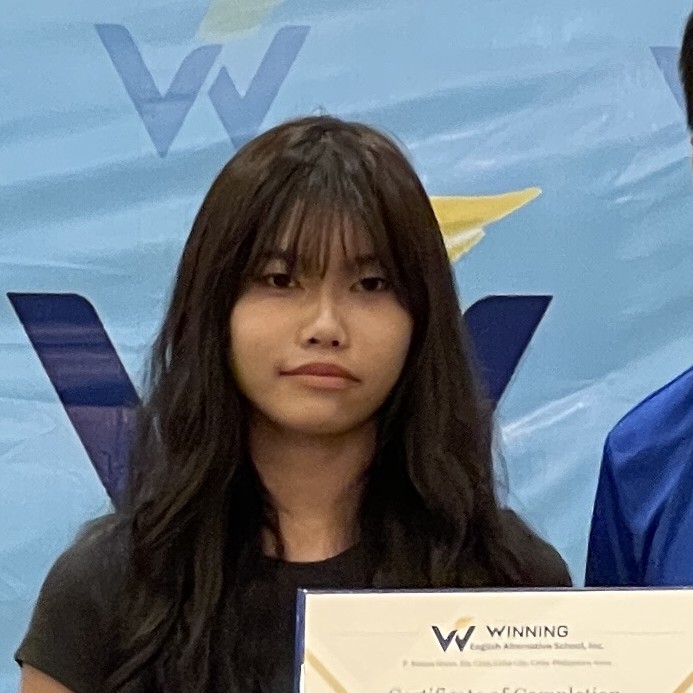 ตอนแรกฉันรู้สึกประหม่าและไม่รู้ว่าจะเกิดอะไรขึ้น ต้องขอบคุณคุณครู เพื่อนร่วมชั้น และเพื่อนๆ ที่ทำให้ Winning English Academy กลายเป็นบ้านหลังที่สองของฉัน ฉันได้เรียนรู้มากมาย ไม่ใช่แค่ภาษาอังกฤษ แต่ยังรวมถึงชีวิต มิตรภาพ และตัวฉันเองด้วยบ้านหลังที่สองนี้จะเป็นส่วนหนึ่งของฉันตลอดไปและไม่มีวันลืม Maraming salamat po!